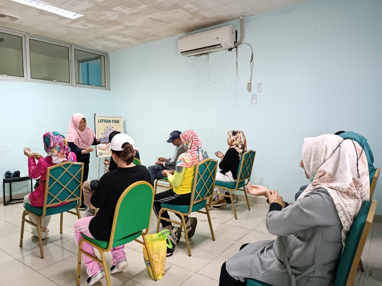 Perawat Istafiyana Rahayu menjelaskan tentang urutan tata cara latihan fisik bagi penderita diabetes yang diawali dengan pemanasan ditambah peregangan selama 10 menit.