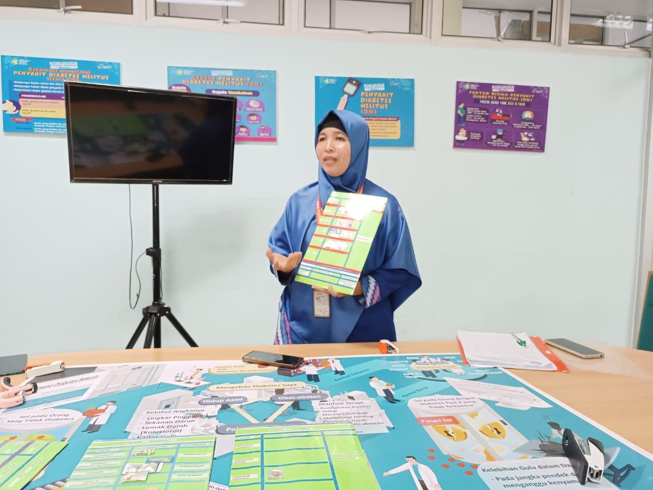 Penggunaan terapi diabetes yang tepat dapat tercapai jika penderita memahami jenis obat, cara kerja, dan efek samping obat anti diabetes yang dikonsumsi. Hal ini disampaikan oleh Siti Rahima Harahap, S. Kep. Ners ketika memberikan edukasi seputar Obat Anti Diabetes kepada pasien dan pengunjung RSUD SAMA Kota Pontianak. Jumat (9/08/2024).