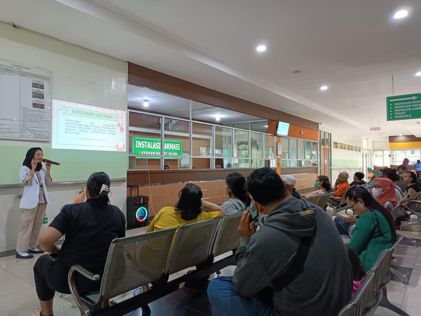 “Mengkonsumsi makanan yang tidak sehat (tinggi gula, asam, karbohidrat olahan) merupakan salah satu penyebab utama terjadinya gigi berlubang” ujar drg Radinda Faridzya Fitriyanto ketika memberikan informasi kesehatan kepada 25 pasien dan pengunjung di UPT RSUD SSMA Kota Pontianak, Kamis (16/1/2025).
