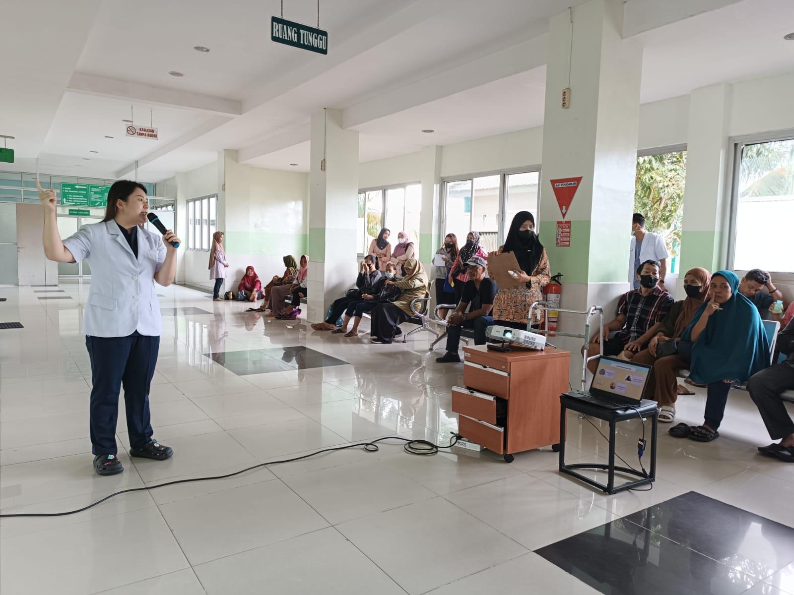 drg. Febria mengungkapkan kehilangan gigi bisa terjadi karena gigi berlubang (karies) dan penyakit gusi (periodontitis) ketika memberikan edukasi kepada 30 pasien dan pengunjung di UPT RSUD SSMA Kota Pontianak, Kamis, 5/9/2024.