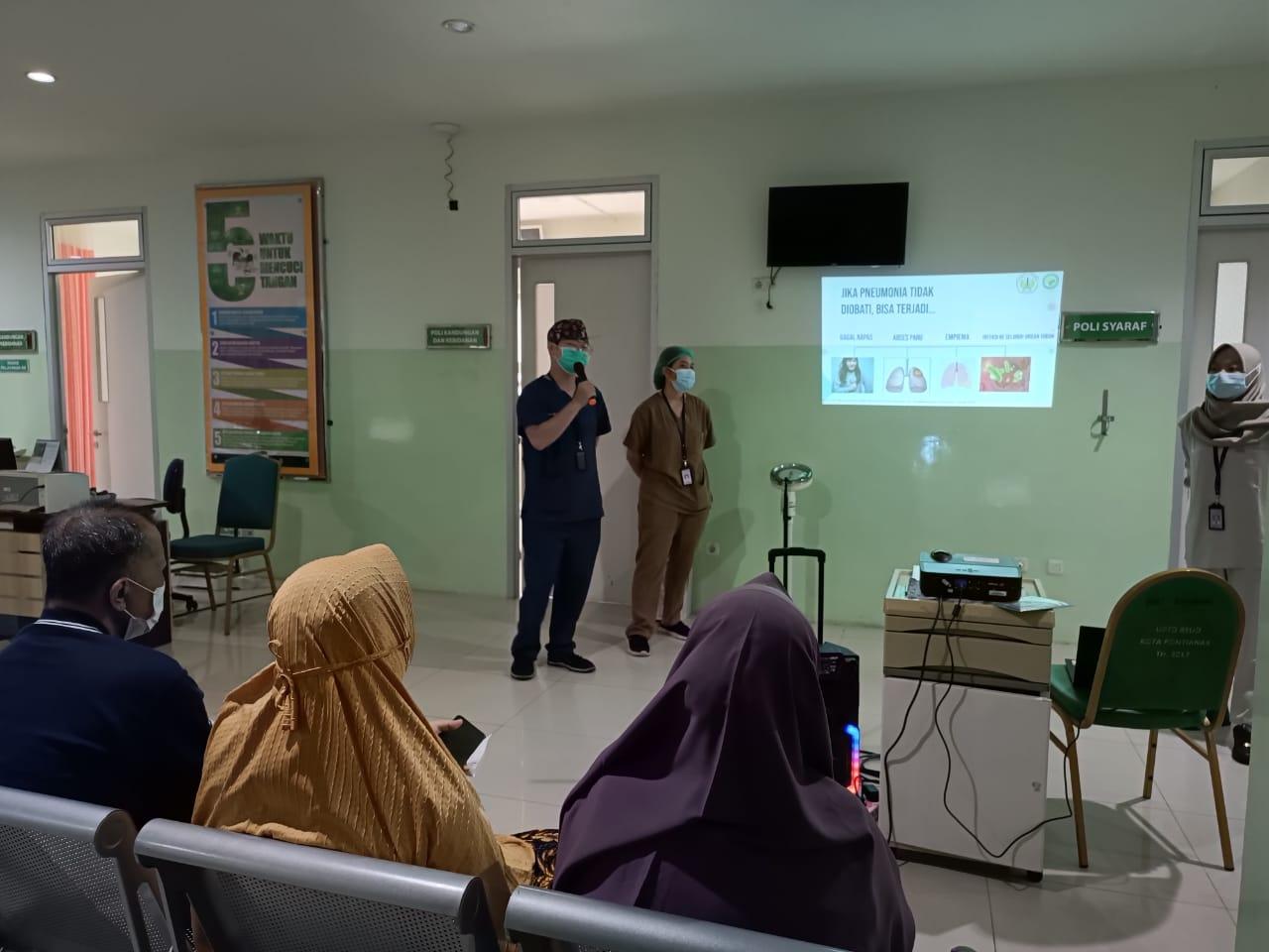 PONTIANAK - Rumah Sakit Umum Daerah (RSUD) Sultan Syarif Mohamad Alkadrie (SSMA) Kota Pontianak menggelar penyuluhan kesehatan kepada 35 pasien dan pengunjung rumah sakit tentang Pneumonia, Senin (27/11/2023).